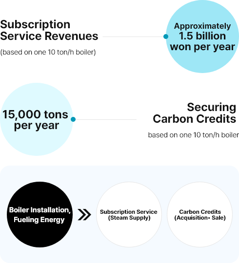 | Initial cost of adoption | Zero boiler purchase cost for customer, significant cost savings (only 100M KRW deposit) | 3rd party boiler purchase cost : 6 tons - 800 million / 10 tons - 1.5 billion scale input |